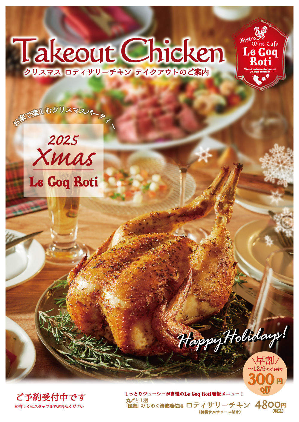 2025年クリスマスロティサリーチキンのご予約受付開始